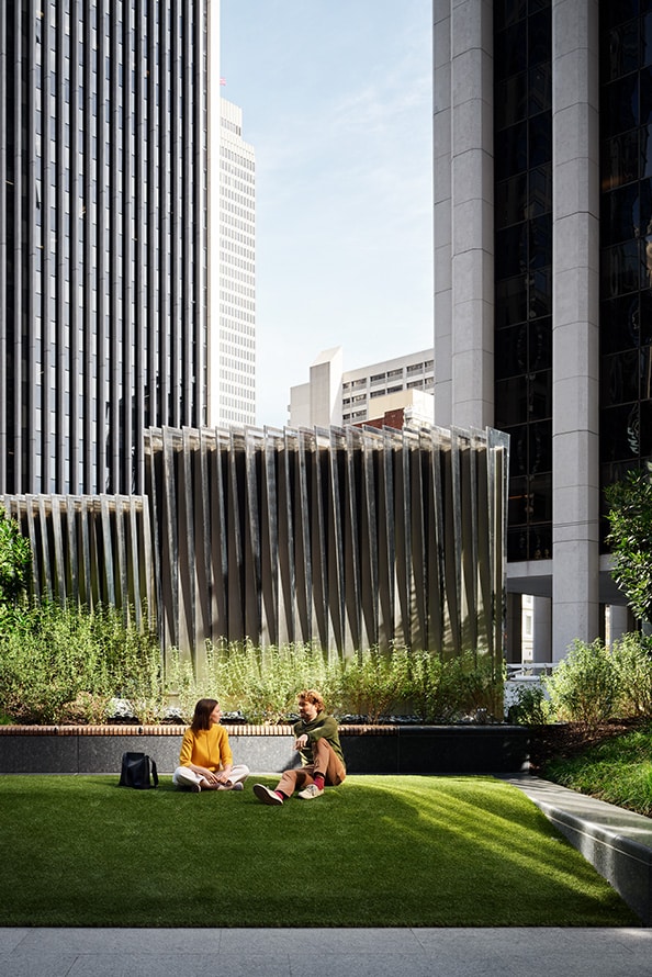 This 1982 landmark plaza and surrounding public realm in San Francisco’s financial district is being rethought for a new urban dynamic. The revitalization respects the grid and pure geometries laid out by the original designers, Philip Johnson and Bill Callaway, while incorporating 20% more planting, creating more greenery downtown and assisting with a reduction in the urban heat island.