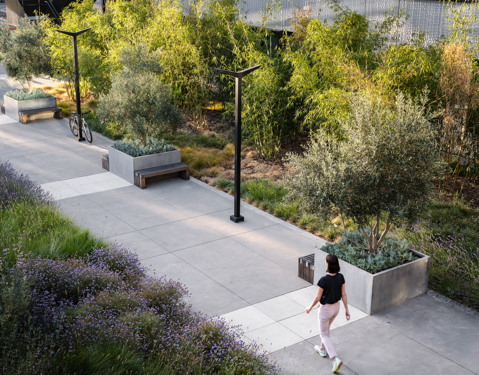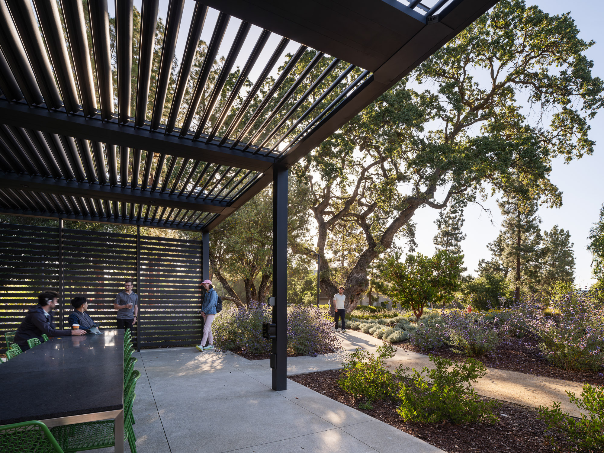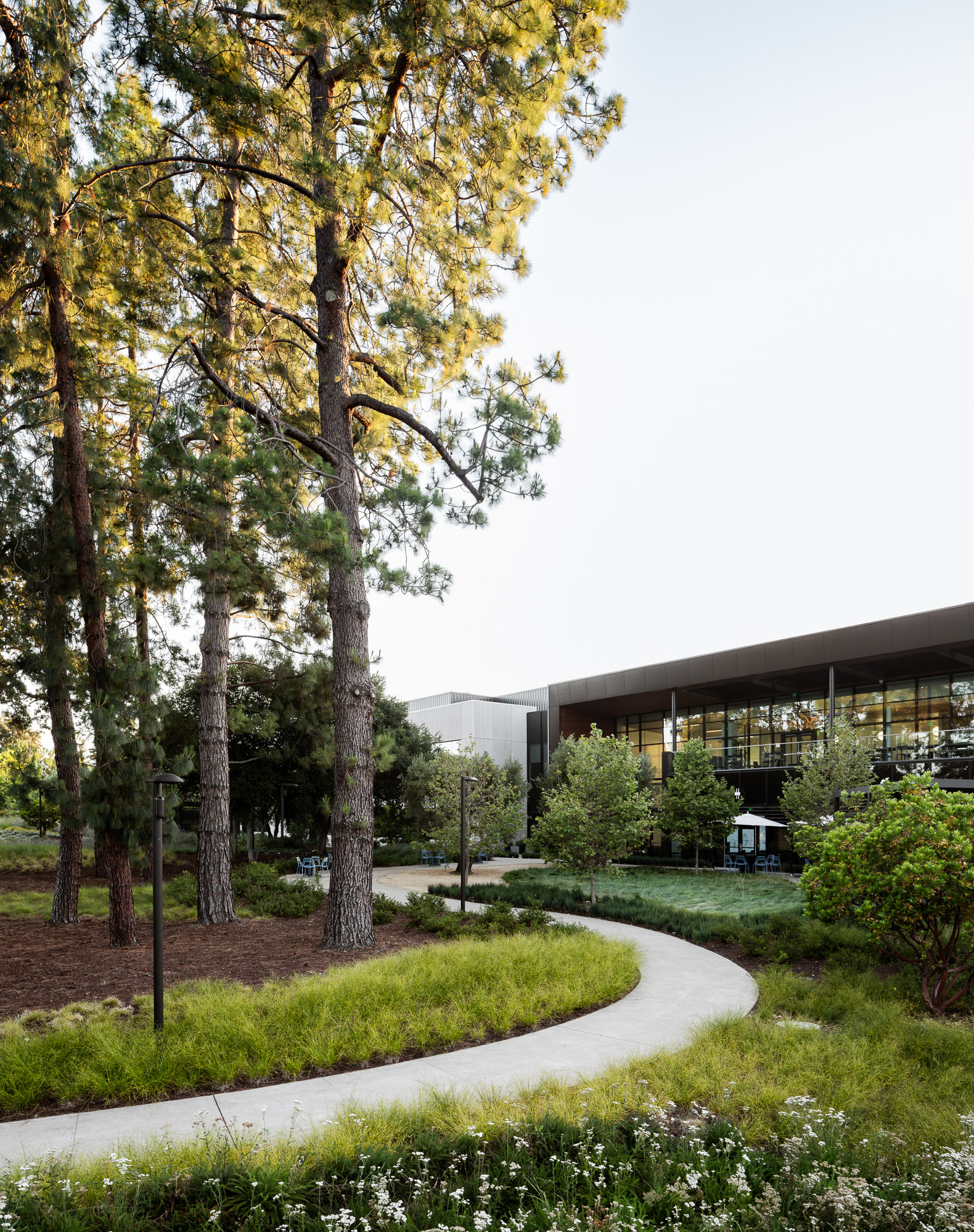 More than ten mature oak trees were carefully preserved and woven into the site plan, anchoring the landscape with continuity and natural character. The design creates a seamless relationship between built and natural environments, offering distinct spaces for focused work, informal collaboration, and restoration. The planting strategy prioritizes California native and climate-adapted species—comprising more than half of the palette—to support long-term sustainability, resilience, and a daily connection to nature. Subtle, targeted interventions transform previously underused areas into inviting outdoor rooms, while strong indoor–outdoor connections extend the workplace beyond the building envelope. Delivered on an ambitious 18-month timeline, the project balances beauty, performance, and ecological stewardship to create a cohesive, high-functioning campus environment.
