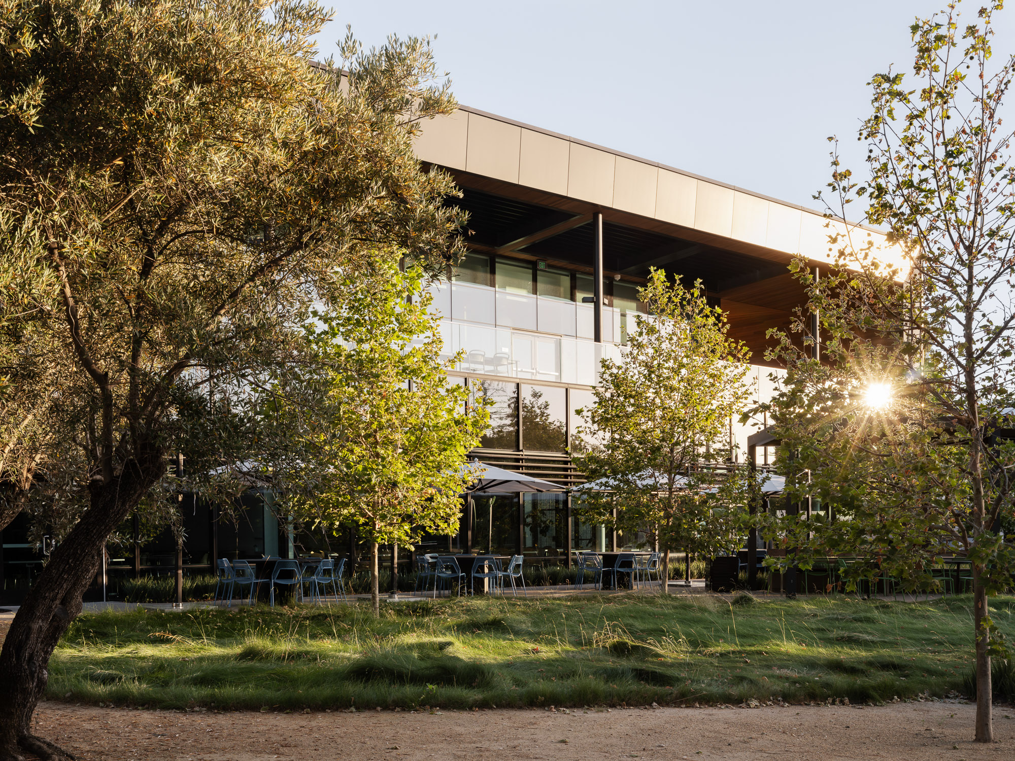 ”Native and climate-adapted planting reinforces sustainability while grounding the campus in its natural context.