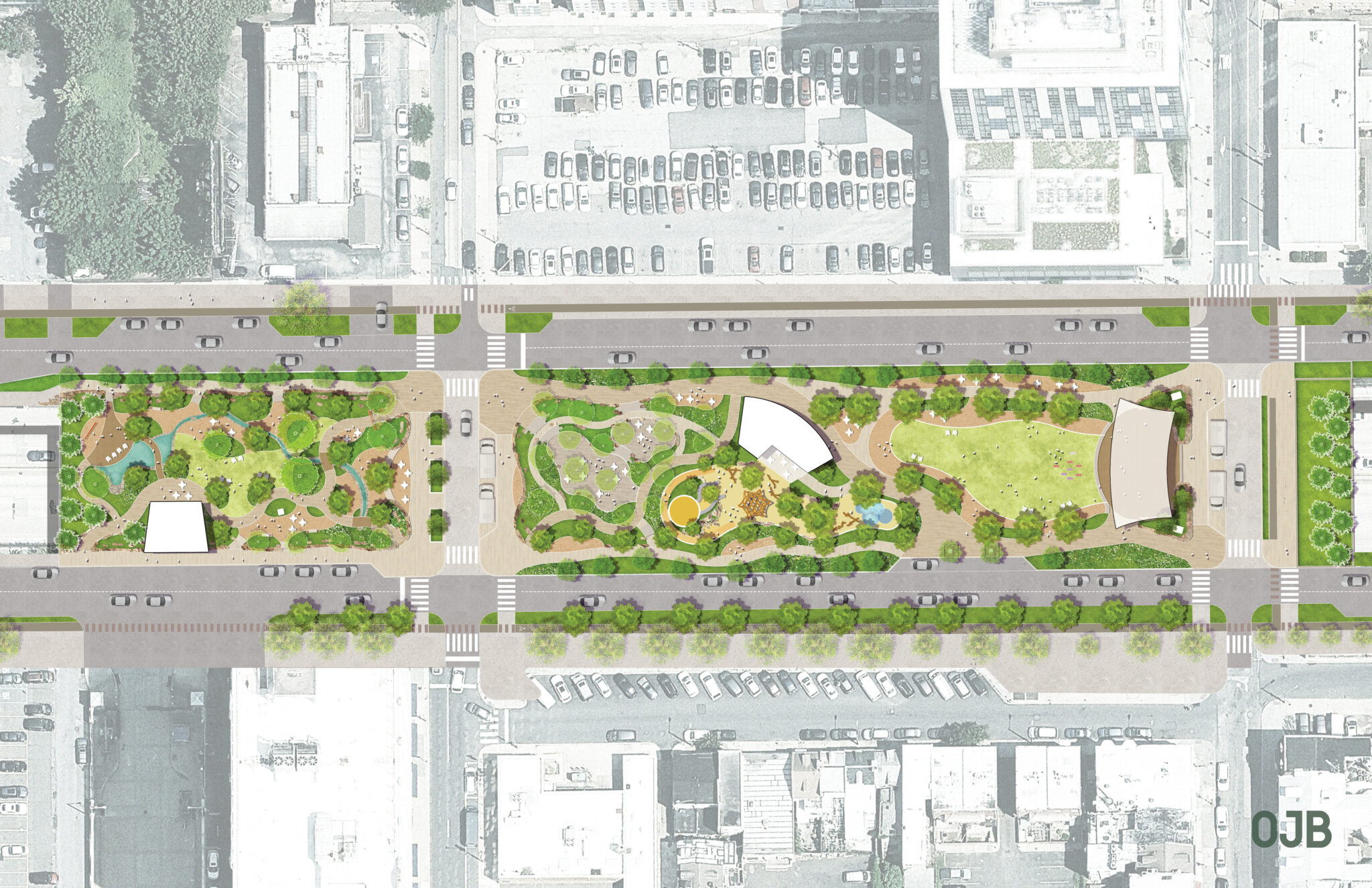 OJB is providing landscape architecture services as part of a multi-disciplinary design and engineering team hired to cap the Expressway between 10th and 13th streets—a move that will literally “stitch” Chinatown and Chinatown North back together. In addition to the new park, the project will enhance accessibility and walkability with safer pedestrian crossings at adjacent intersections.