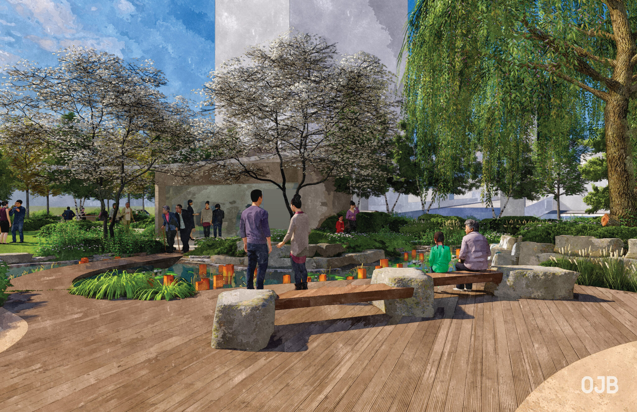 ”Inspired by the design principles of traditional Chinese gardens, the vision draws on local context and community culture to enrich the public realm experience.
