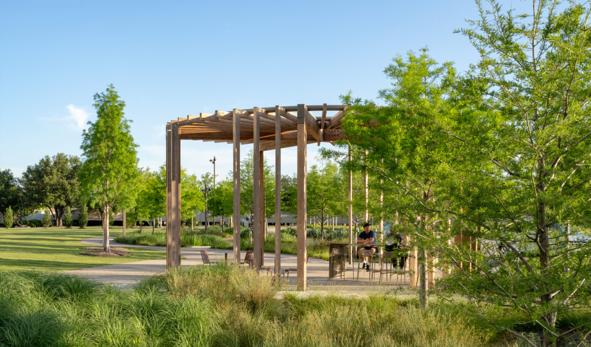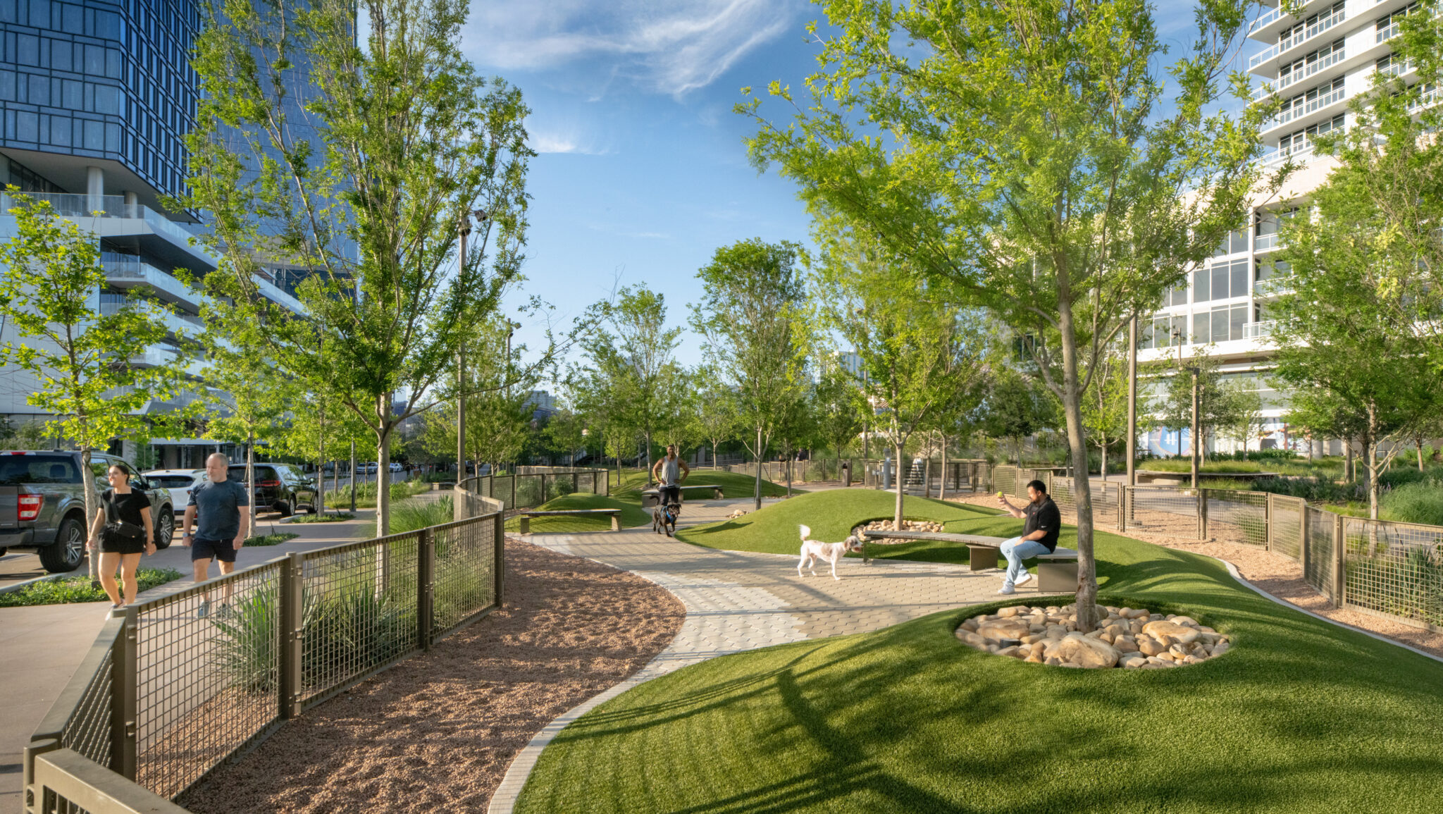 ”Extensive rain gardens run the length of the park, managing increasingly frequent and severe rain events. The majority of the park's roughly 26,000 plants are pollinators or native to North Texas.