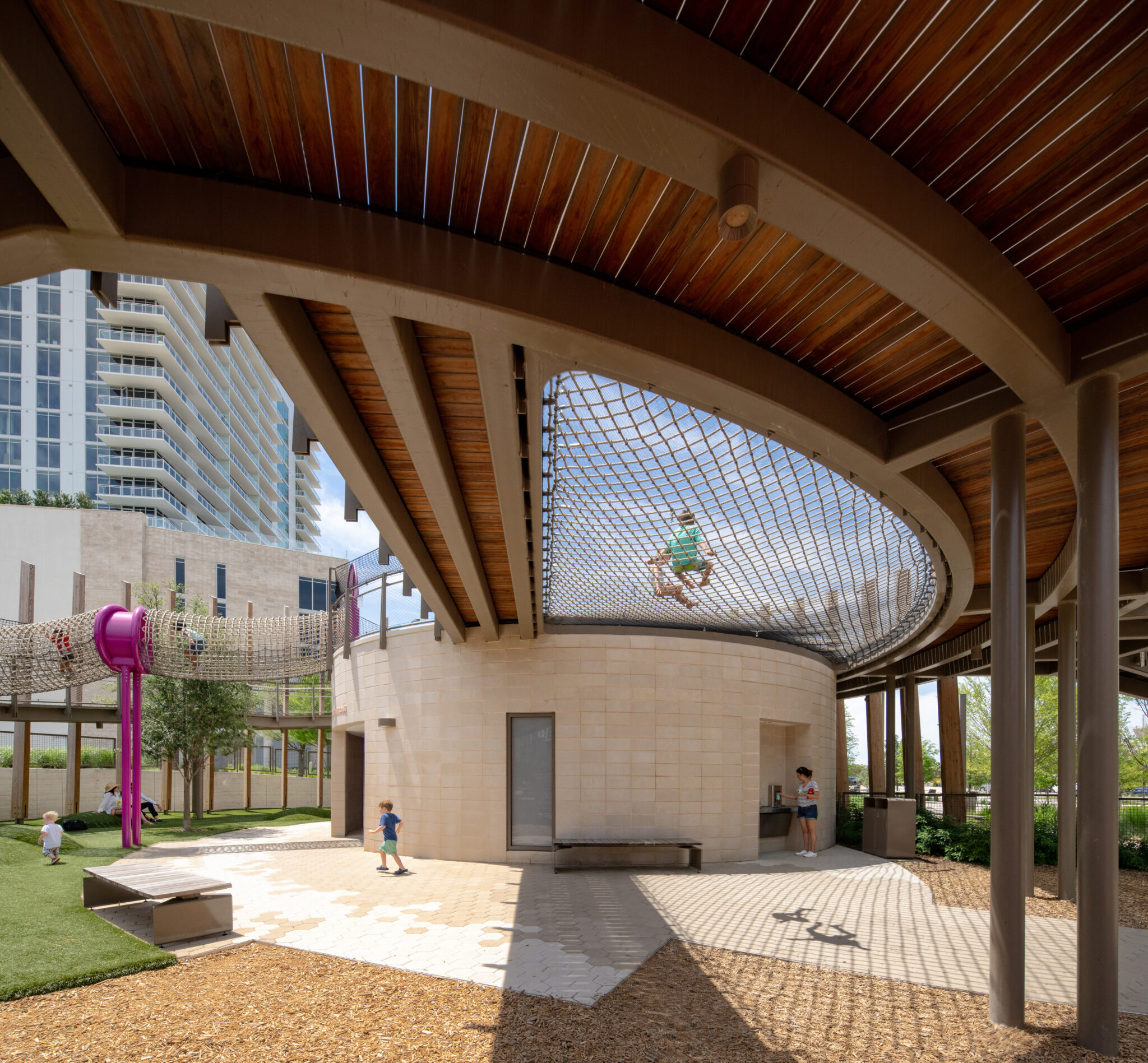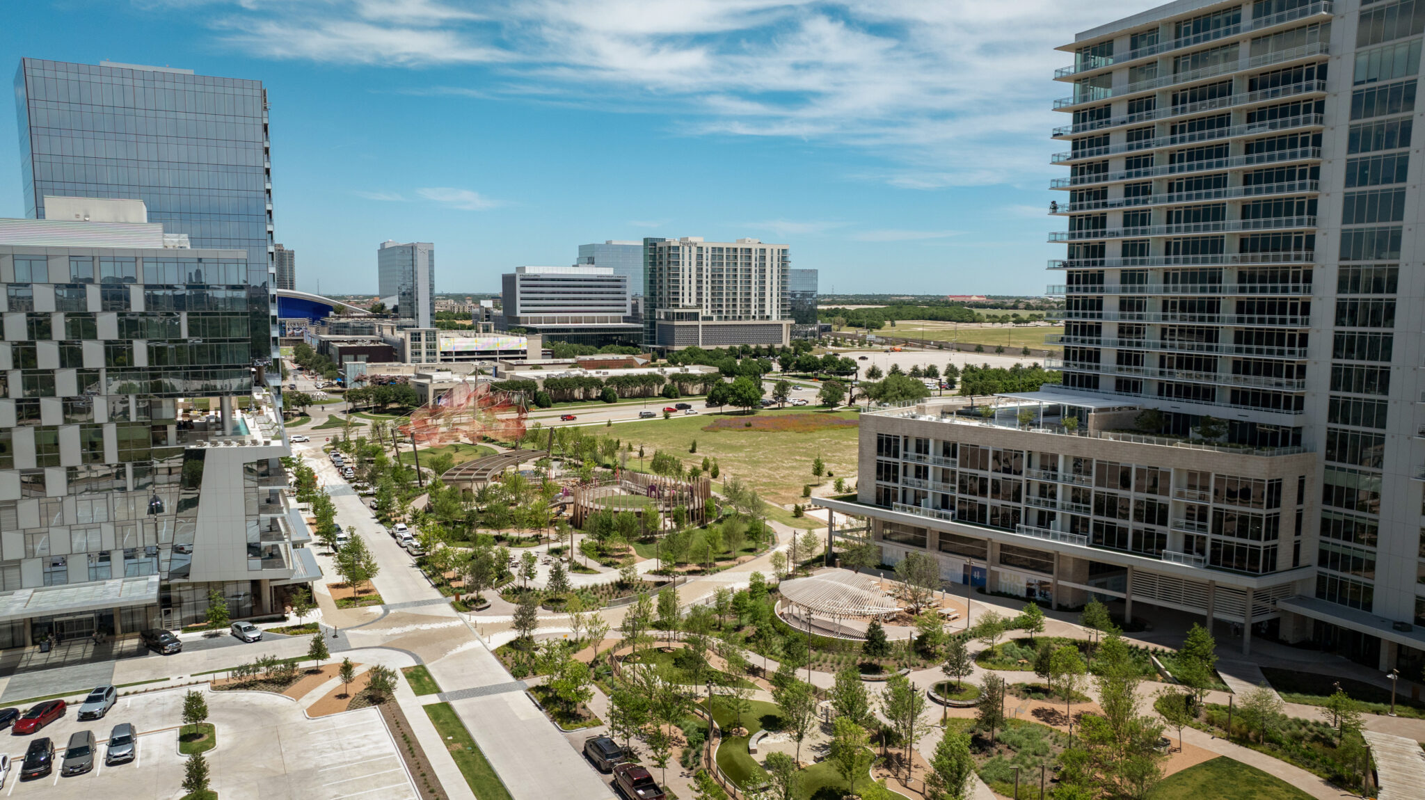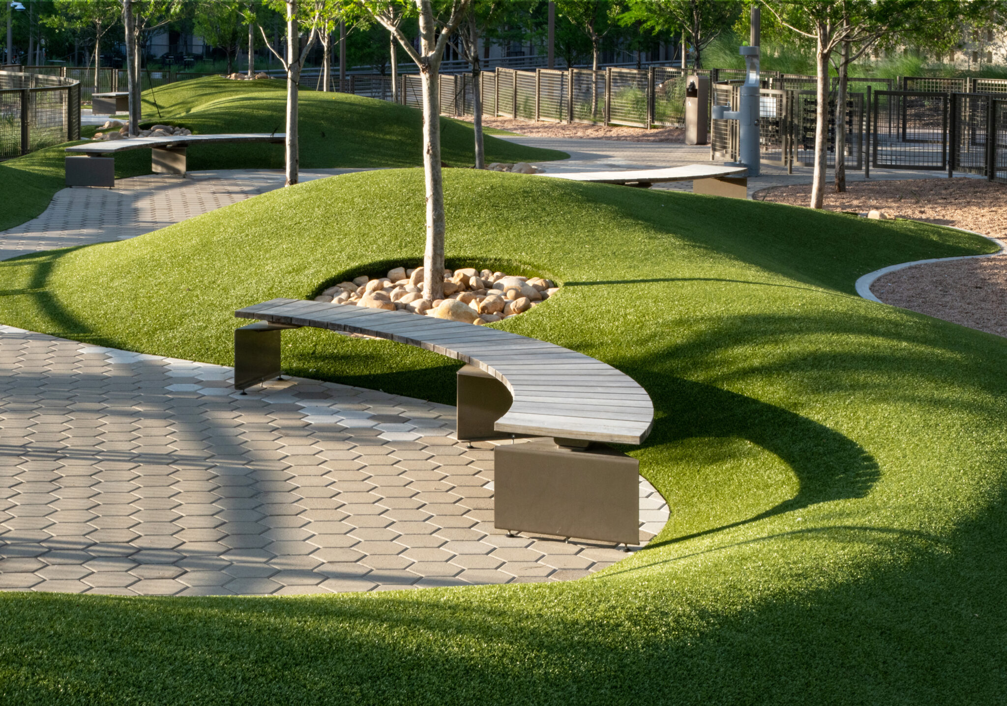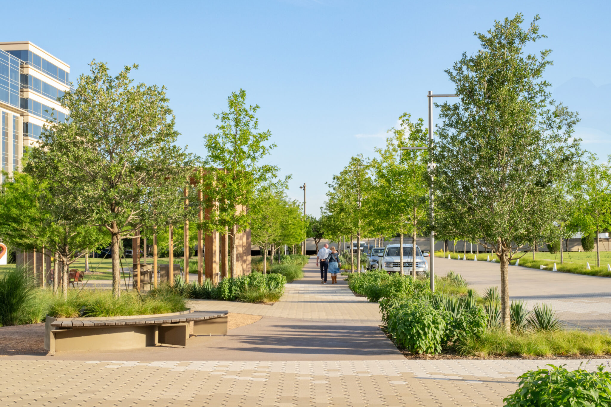 Kaleidoscope Park is the centerpiece of the larger Hall Park development in Frisco, Texas, designed as a comprehensive ecosystem of buildings and landscape across 162-acres that bring people together against a backdrop of vibrant parks and open space.