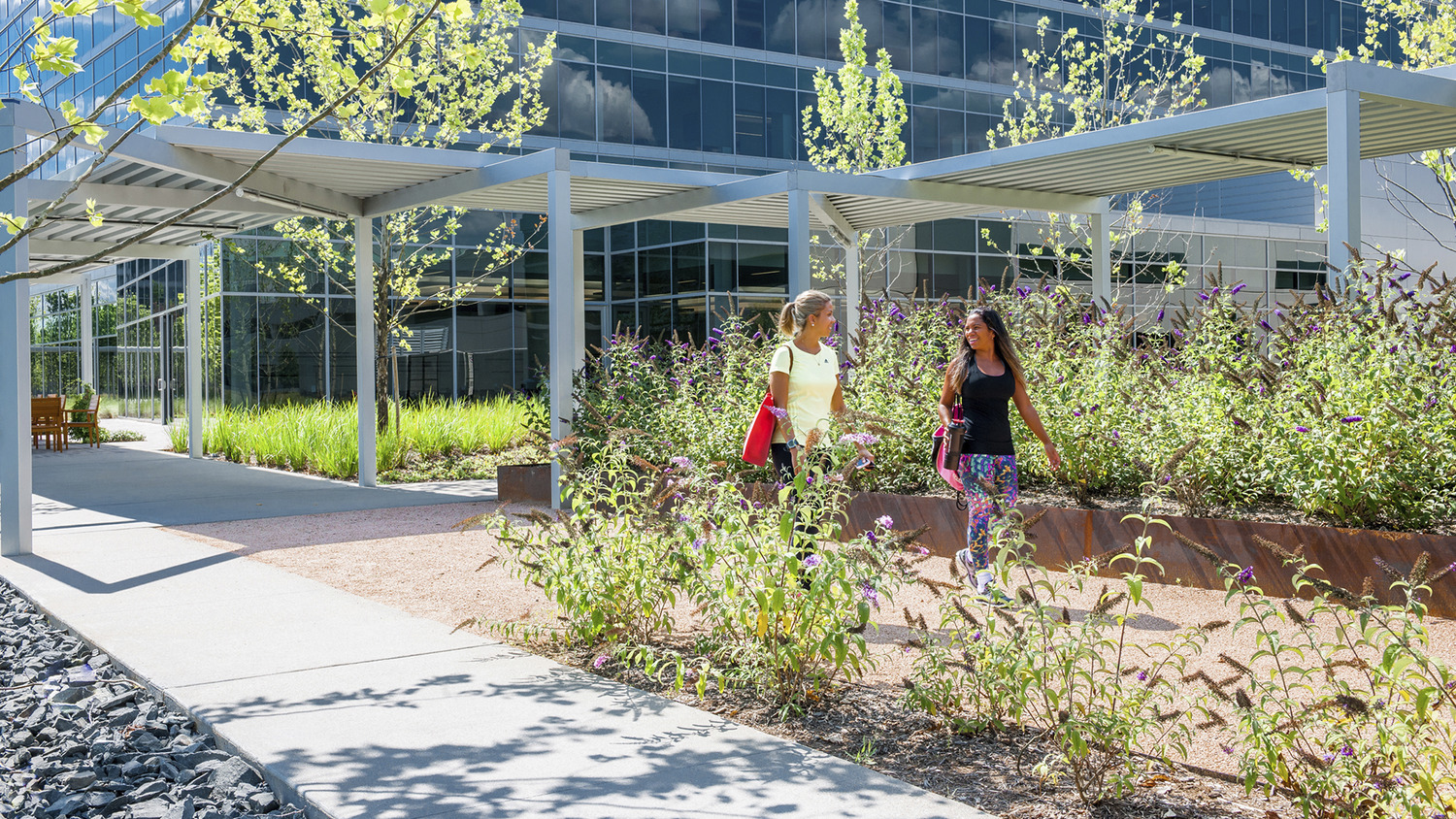 Walking pathways through the campus create places for connection and respite throughout the day.