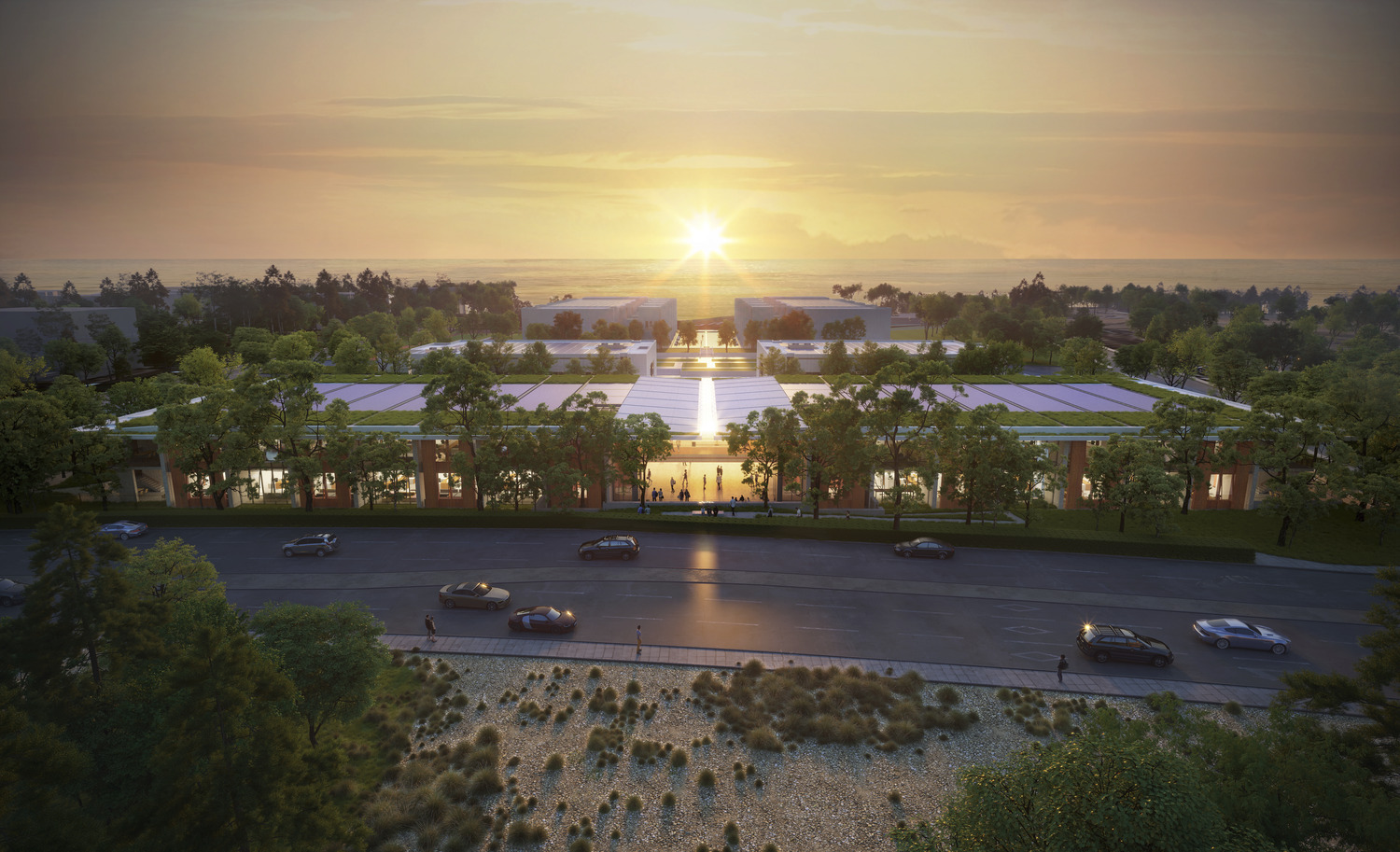 OJB was charged with integrating the expanded campus with Louis Kahn’s iconic modernist structure, celebrated for its powerful concrete forms and minimal landscape. A prominent east-west axis responds to the original runnel and maintains expansive views. Beyond, the landscape becomes more sinuous, with an immersive south garden with infrastructure to support outdoor work.